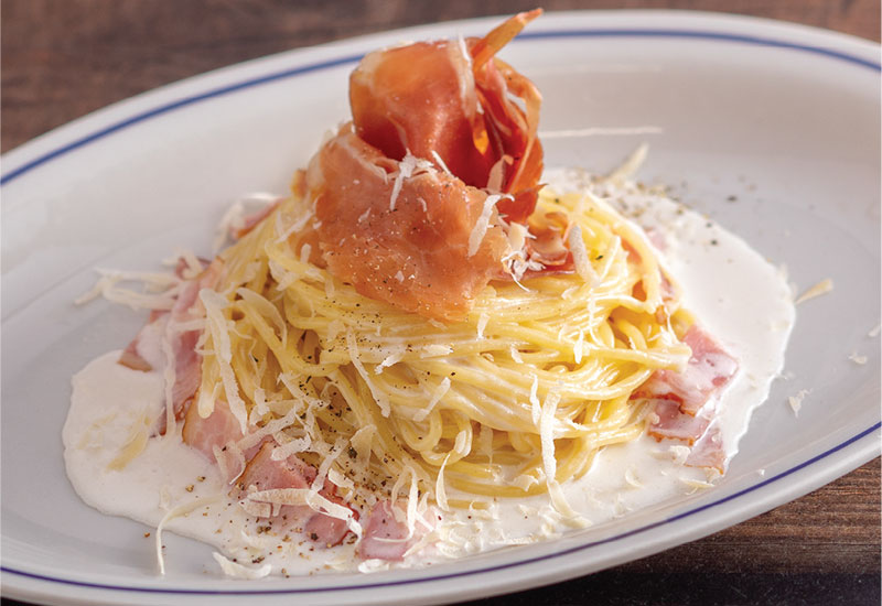 スモークベーコンと生ハムのチーズクリームソース[ドリンク付き]