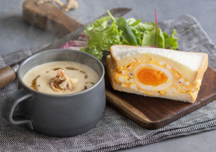 芳醇な黒トリュフ塩を使用した卵サンドイッチ。