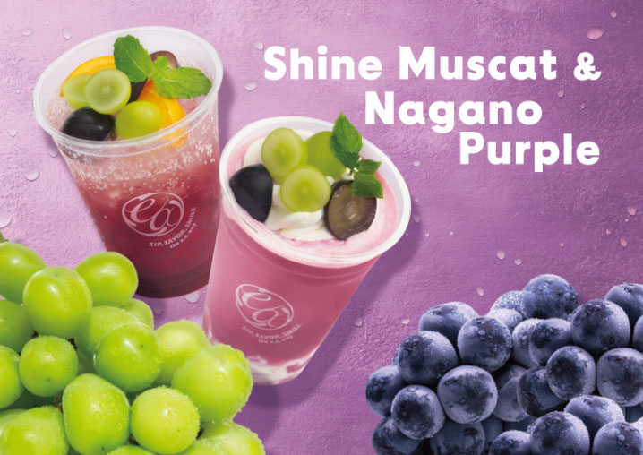 秋の味覚のみずみずしいシャインマスカットとナガノパープルをなめらかなパンナコッタとぶどうのスムージーとともに。