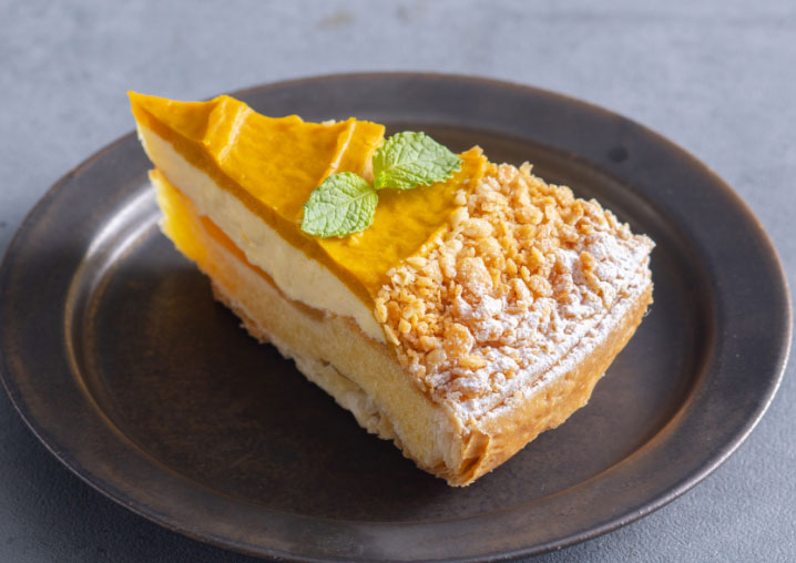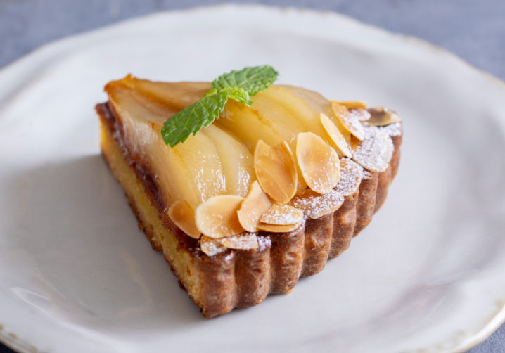 メゾンカイザーブレッドをアパレイユにじっくり漬け込みフレンチトーストにし、旬のラ・フランスと相性が良いキャラメルとミルクティークリームを合わせました。