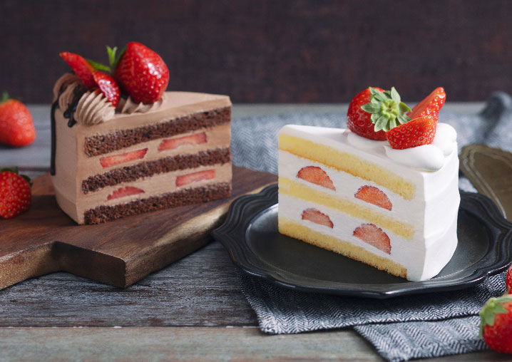 ふんわりココアスポンジとチョコクリームで、ジューシーなあまおうをサンドしたショートケーキです。
