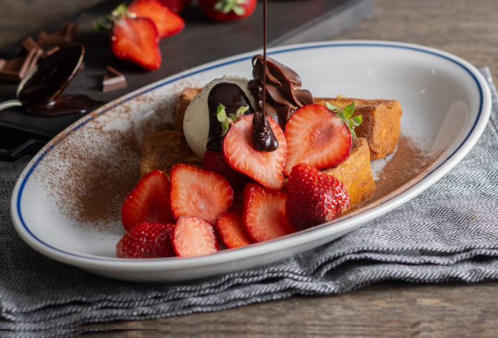 メゾンカイザーブレッドをアパレイユにじっくり漬け込みフレンチトーストにし、なめらかな生チョコクリームとジューシーなあまおうを合わせました。