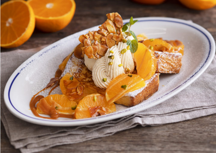 メゾンカイザーブレッドをアパレイユにじっくり漬け込みフレンチトーストにし、果汁たっぷりでとろける食感のせとかとアールグレイクリームを合わせました。