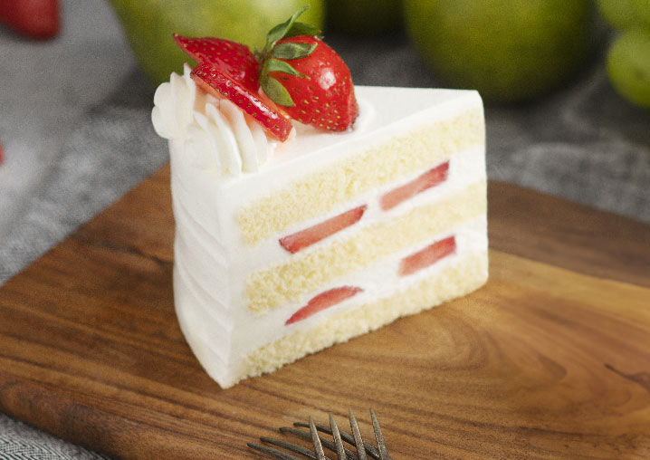 ふんわりスポンジとホイップクリームで甘酸っぱいいちごをサンドしたショートケーキです。