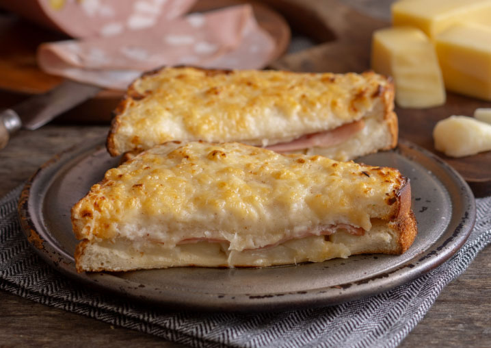 しっとりとしたモルタデッラソーセージとコクのあるグリエールチーズ、濃厚なホワイトソースの相性が良いクロックムッシュ。
